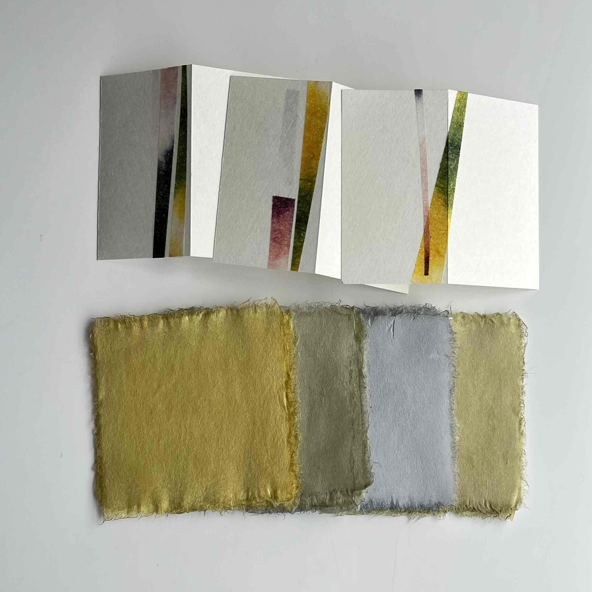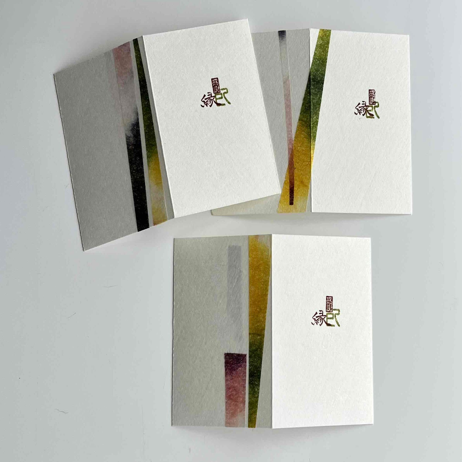 仲秋の雨の日 2025年09月11日 発送用のひと言箋用に杉原紙を染めた。画像で見るともう少し先の季節の色合いかなぁと思う。今日のように、朝から雨が降ったりやんだりしている曇り空にはぴったりだけど。台紙(機械漉き和紙 雪)に貼付けているのは典具帖紙。そういえば、遊印もエンボッサーも使っていないと気づいたが、更に季節の印を捺すのはしつこくなる気がしてやめた。乙巳のご縁に感謝してきげんよくいきましょ藤井あき乃 «前 次» Blog