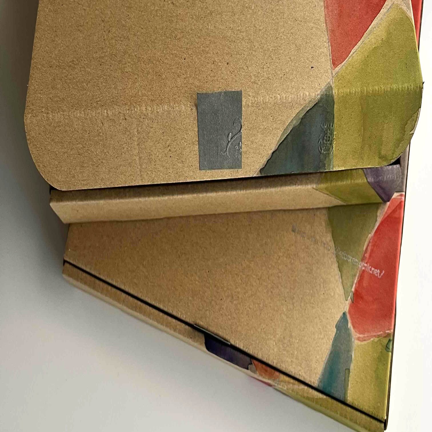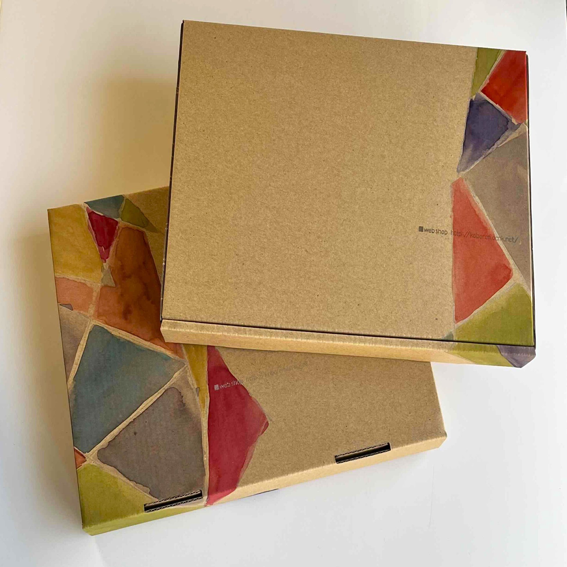 簡易金封を発送するのにぴったりの箱(薄めのダンボール?というか厚紙か)に色塗りして遊んだ結果。