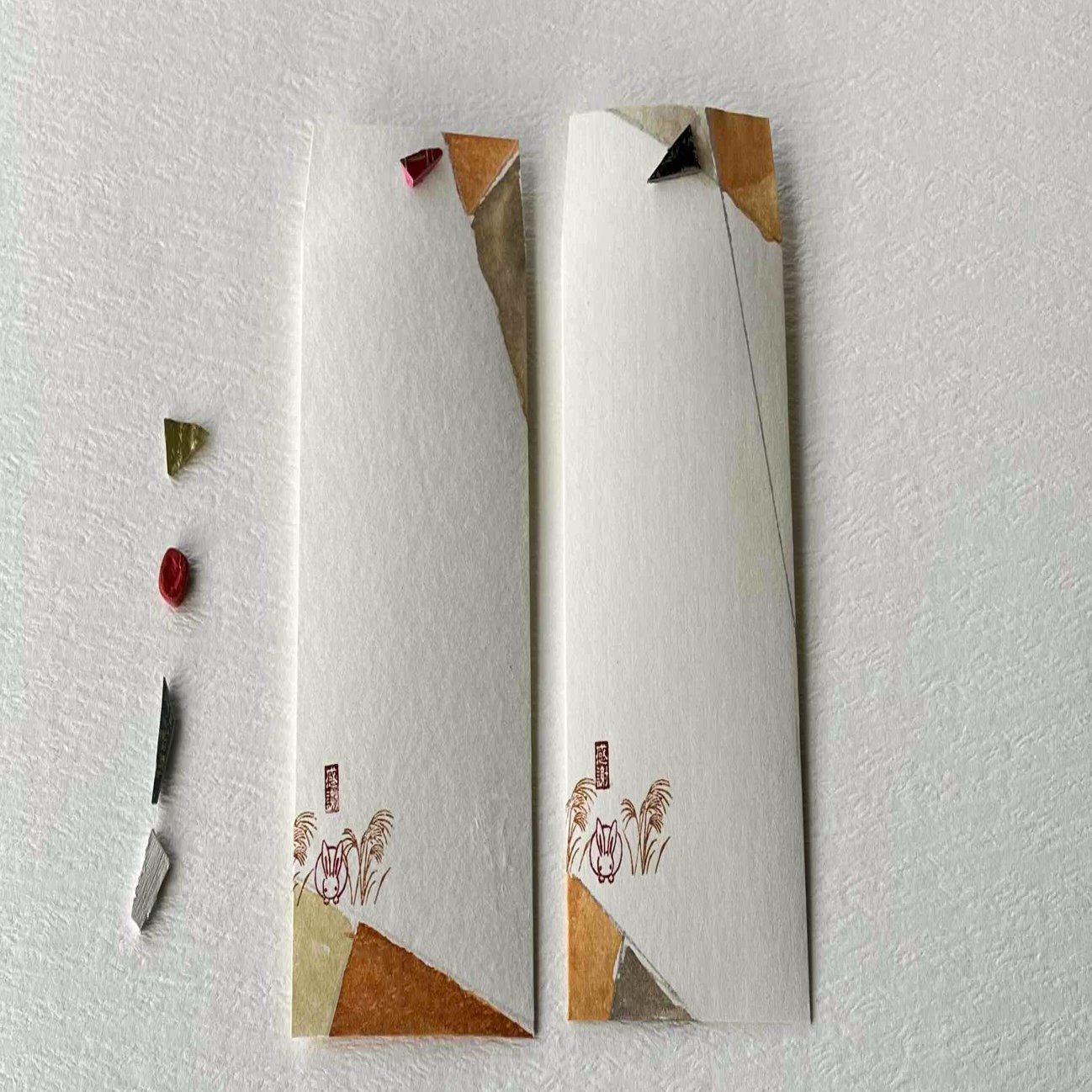 色塗りした機械漉き和紙「雪」で作ったぽち袋。