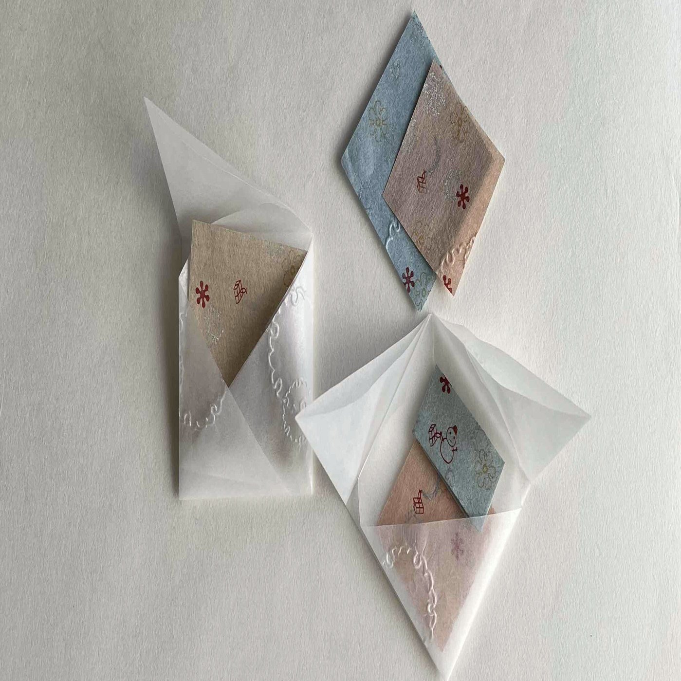 あえてエンボッサーのみで仕上げて手漉き和紙の紙片を添える。