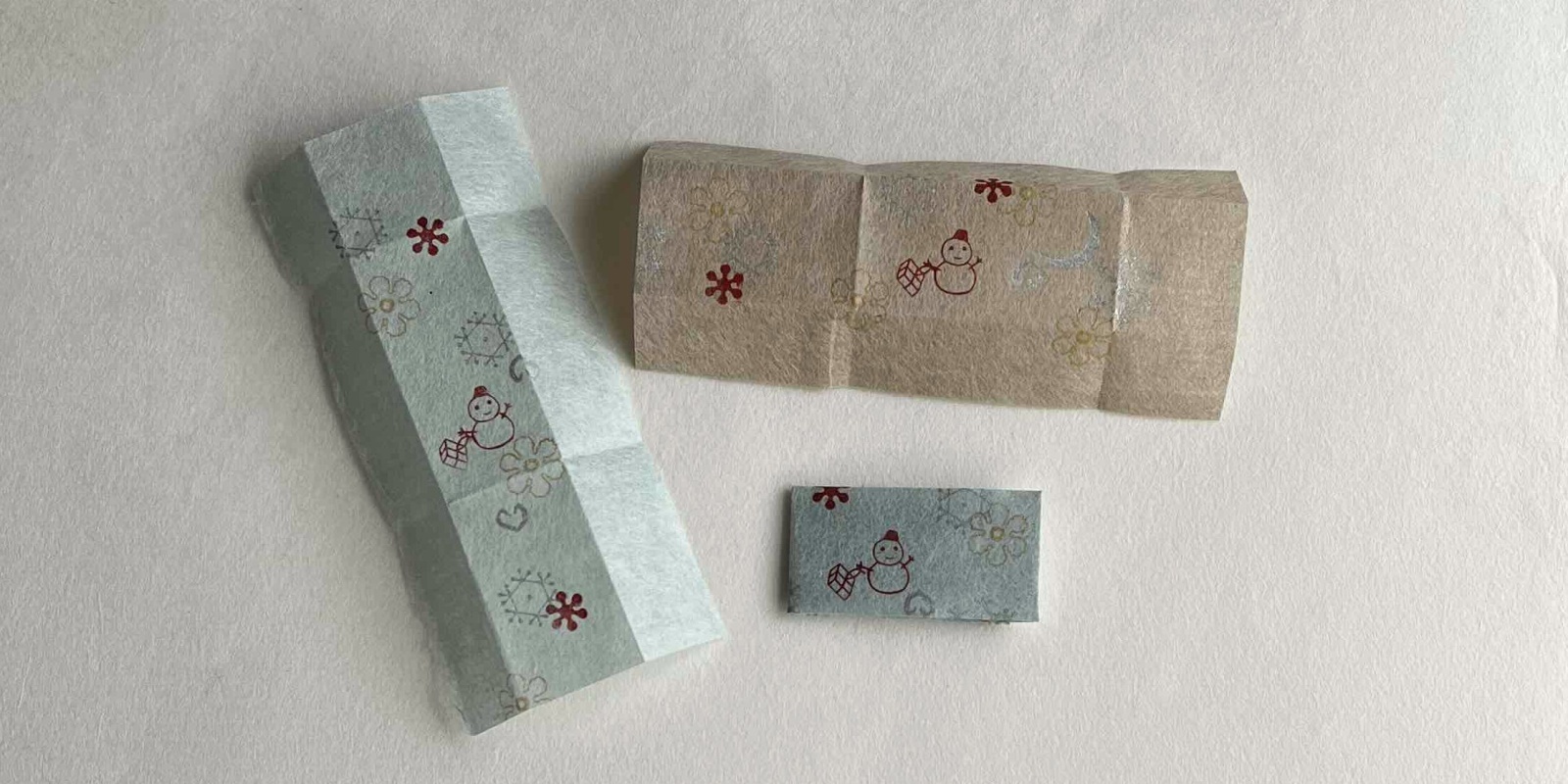 〔藍染め(濃淡)とあけび染めの手漉き和紙(福西和紙本舗さん)〕