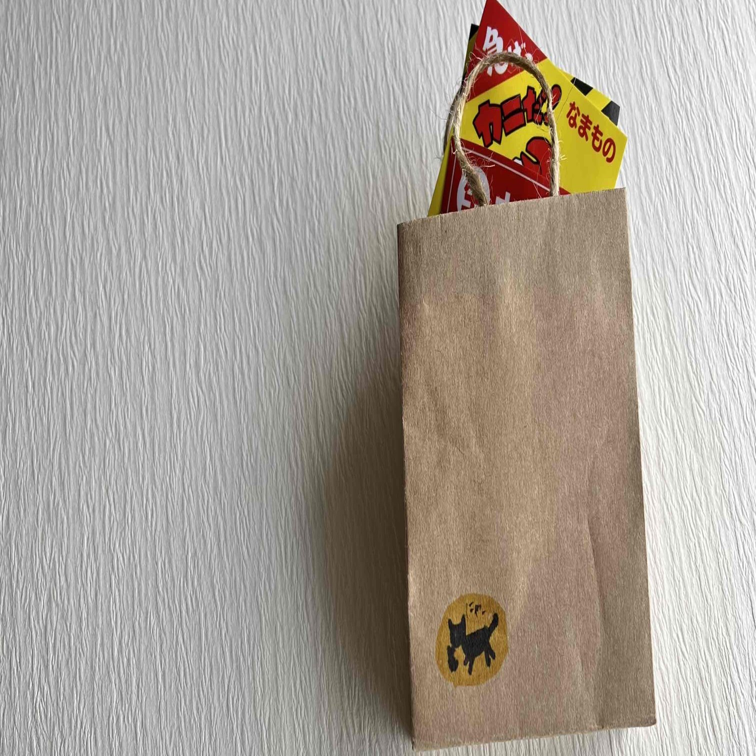 お子ちゃま来店時にプレゼントしているらしいマチ付の手提げ袋(画像)を一枚くれた。