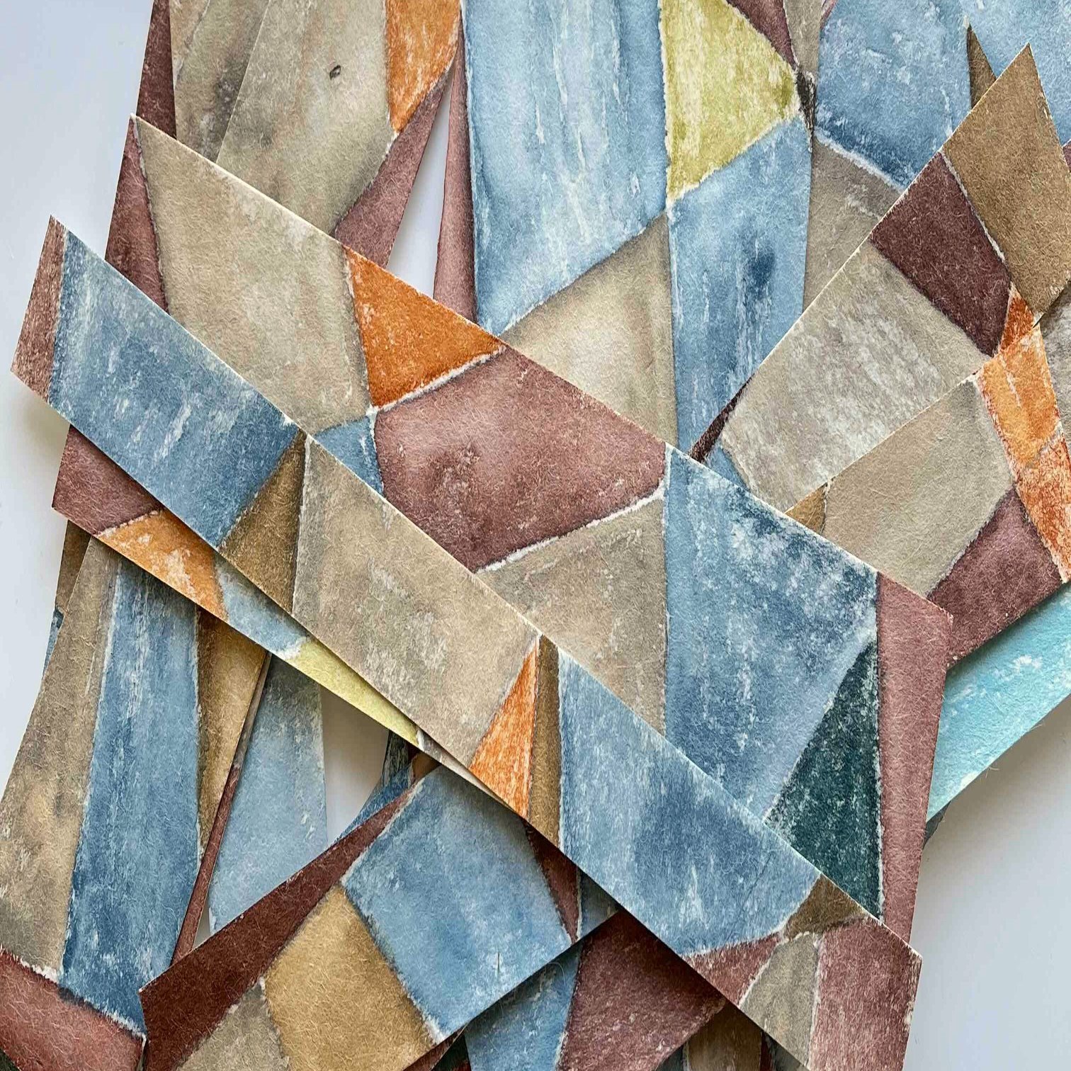 帯には色塗り和紙と粘土のかけら(というか玉)をつかう。