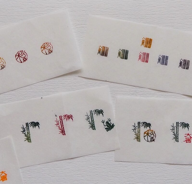 印肉はにじみが出てしまいますが、中央の印影は印泥(美麗)で捺したものです。